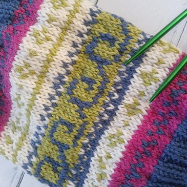 Learn how to read charts, carry yarn and more in the stranded colourwork session £12pp